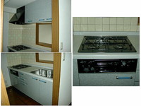 システムキッチン、ビルトイン ガスコンロ、レンジフードという設備です。